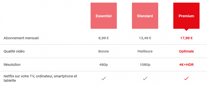 Selon la nouvelle grille tarifaire en vigueur, l'offre de base de netflix (« l'essentiel ») coûte 8,99 …